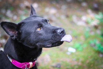 Mlaďounký pes s uhrančivýma očima , modrým jazýčkem a skvělou povahou.