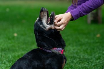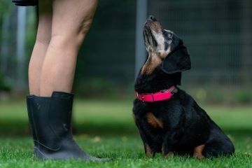 Za pamlsek udělá klidně i kotrmelec, zná základní povely, ale neplní je vždy na 100%. Na vodítku chodí spořádaně.