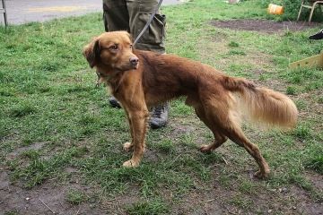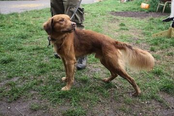 Tomáš je mladý pes - jsou mu dva roky. Je to kříženec ohaře. Je milý, aktivní, základní výcvik nemá, ale na vodítku umí chodit pěkně. Bez problému se snese s fenami a menšimi psy, na ty větší to zkouší, ale u nás ho čeká škola psího chování - pomalu ho začneme začleňovat do smečky, kde máme i větší pejsky.