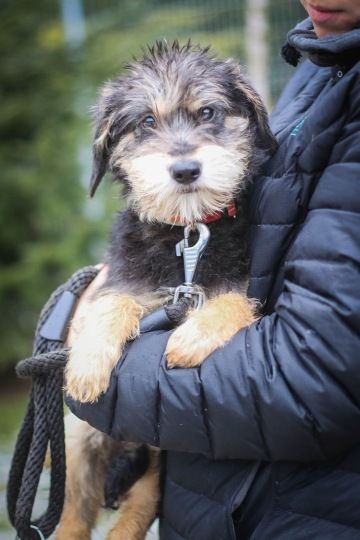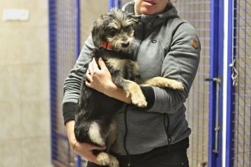 Tomášek je asi 3/4 roku starý kříženec mixe knírače. Je to psík na kratších nožičkách, než má většina pejsků z "jeho smečky". Váhy 8 kilo (v dospělosti neočekáváme, že by měl nějak extra moc přes 10 kg), spíš už moc neporoste. Tomášek pochází z přemnožené smečky, která za svůj život nezná nic jiného než jedinou oplocenou zahradu a jediného člověka, který se psům nestíhá věnovat. Po stránce socializace je to tedy špatné - bojí se nového prostředí, nových lidí, dělá mu problém vodítko. K jiným psům je přátelský a jejich společnost naopak vyhledává a dodávají mu odvahu v "neznámu". Dětí se nebojí, po těch zvědavě pokukuje. Pravděpodobně v něj tito "malí" lidé vzbuzují víc důvěry. Nechá se sebou manipulovat, neožene se, nevrčí, není agresivní. Spíše se krčí, nebo se snaží utéct a schovat.