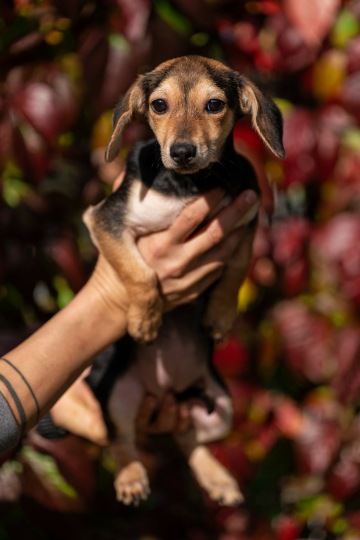 Vážka je asi 5-6 měsíců stará fenečka, kříženka jezevčíkoidního typu. Vyrůstala v přemnožené smečce psů, kteří se nejspíše množili jen mezi sebou. V podmínkách, ve kterých by neměl žít nikdo. Znala jen dům plný odpadu a smečku psů ve které docházelo mezi jednotlivci ke konfliktům. Neměla šanci poznat nic z psího života a soužití s člověkem, který se svému pejskovi věnuje.