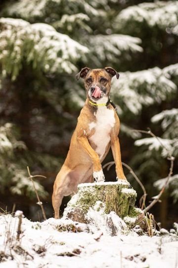 Víky je sedmiletá kříženka velikosti ani ne po kolena. V útulku už byla a nyní se po více jak čtyřech letech vrátila z adopce. Z našeho pohledu je to celkově vzato bezproblémová fenka. Milá, kontaktní, mazlivá. Kolem cizích psů projde v klidu (nevíme, co by říkala přímo na spolubydlícího - nutno ozkoušet). Zvládá chůzi na vodítku a z povelů rozumí ,,sedni, lehni, pac, pocem". Ráda aportuje, ráda spolupracuje s člověkem a za pamlsek ještě raději. Na jméno reaguje výborně. Když vyžaduje pozornost, umí být trochu uječená. Velmi ráda bude aktivním parťákem svému novému majiteli a bude pro ni aktivní domov plný spolupráce a akce vhodný.