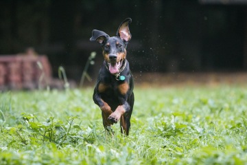 Armin je sedmiměsíční štěně dobrmana s PP, narozen 18.3.2014 v CHS Halit Paša, ocas kupírovaný. Je dobře socializovaný, zvyklý na jiné lidi, děti, psy a další zvířata. Je temperamentní a hravý, má zájem o aport a dobré přivolání. Má základy výcviku, zvládne sedni, lehni..