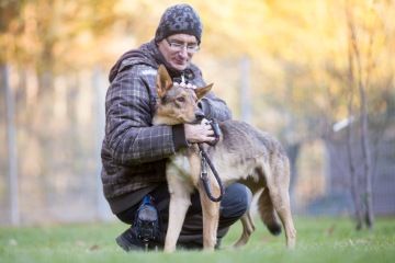 Zpočátku je vystrašený a plachý, ale brzy si najde cestu k člověku a je k němu kontaktní a moc milý. Stejně tak nemá špatné zkušenosti s dětmi a tak se k nim chová minimálně neutrálně. Potřebuje získat důvěru. Při manipulaci je absolutně nekonfliktní - i v největším strachu se neožene, nezavrčí. Nikdy nebyl bit, nemá tedy žádné špatné zkušenosti s lidmi.