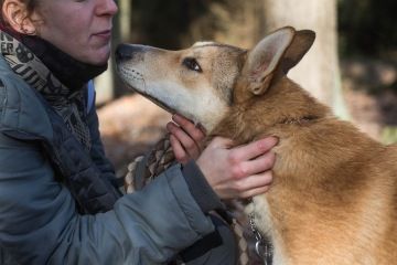 Nikdy jí nikdo nic nenaučil - když se dostala k nám do útulku, tak to bylo poprvé, co poznala kotec a vůbec to, že je oddělena od smečky a je sama. Zpočátku byla natolik vyděšená, že ani nevylézala z boudy, ale během 14 dnů byly pokrokry znatelné. Začala být hravá, bez problému začala chodit na procházky i s cizími lidmi. Nikdy nebyla bita, její vztah k člověku je tedy velmi kladný (po získání důvěy z "neznámého"). Je to pes, který ani v největším strachu nekousnu, nezavrčí. Prostě jen dělá, že je neviditelná. Nebyl s ní tedy sebemenší problém při manipulaci ani při veterinární ošetřování.
