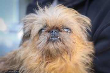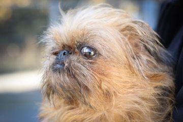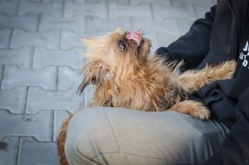 Čtyřkilová šestiletá fenka rasy bruselký grifonek. Zpočátku nejistá a bojácná, ale jak si zvykne "na svého" člověka, je to neskutečná vtěrka vtíravá, mazel umazlený a držka držkatá. Nemá problém prohánět kočky (i když jsou větší než ona a uzemnily by jí jednou ranou), s jinými psy vesměs vychází, ale doporučujeme ozkoušet. Výchovou je nepolíbená, všude vleze, všechno ozkouší a taky si umí "hlídat" svého oblíbeného člověka. Na vodítku zvládá chodit, umí se venčit i venku, když chce. Některých lidí se bojí více, některých méně (nevysledovali jsme společné znaky).